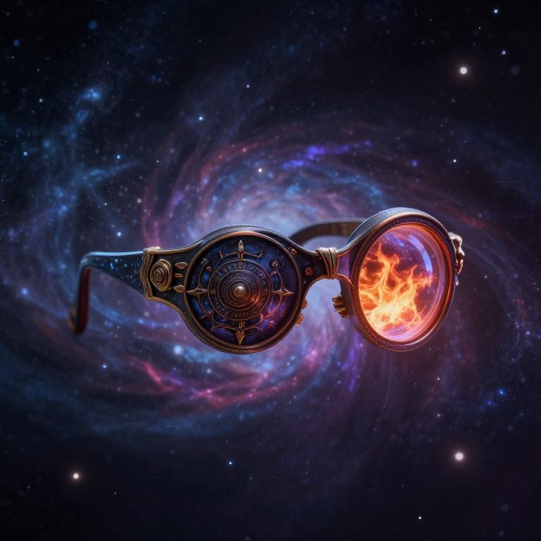 A sentient monocle, pulsating with cosmic whispers and ancient wisdom, drifts through the infinite expanse, its fiery gaze bearing witness to the eternal dance of creation and decay.