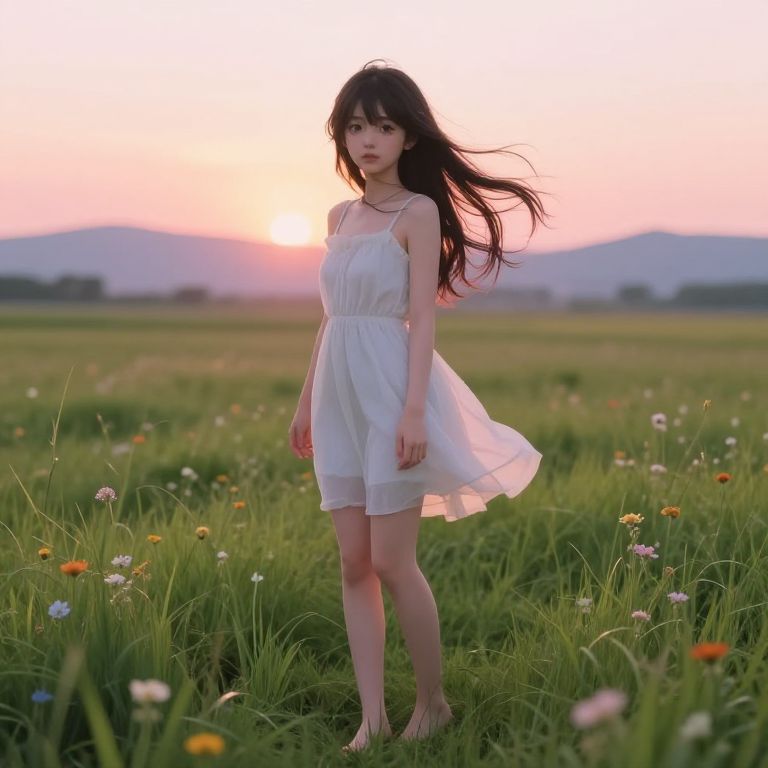 A surreal portrait of youthness, featuring a radiant young person with flowing hair made of blooming flowers and cascading light, set against a dreamy pastel sky with ethereal clouds and floating lanterns.