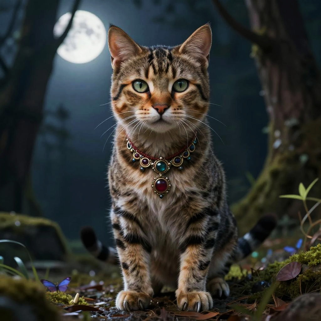 Tabaxi description, feline humanoid with sleek fur, bright yellow eyes, agile pose, wearing tribal leather armor, jungle background, detailed whiskers, fantasy art style