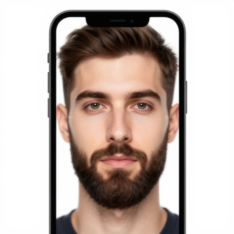 Close-up of a digital beard makeover using the best beard app, featuring a high-resolution facial scan with overlay options for trimming, shading, and beard growth simulation, set against a minimalistic white background.
