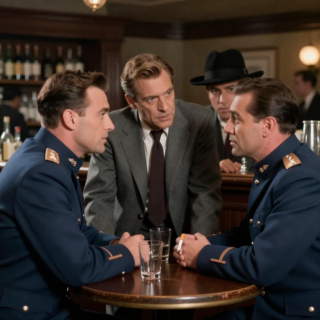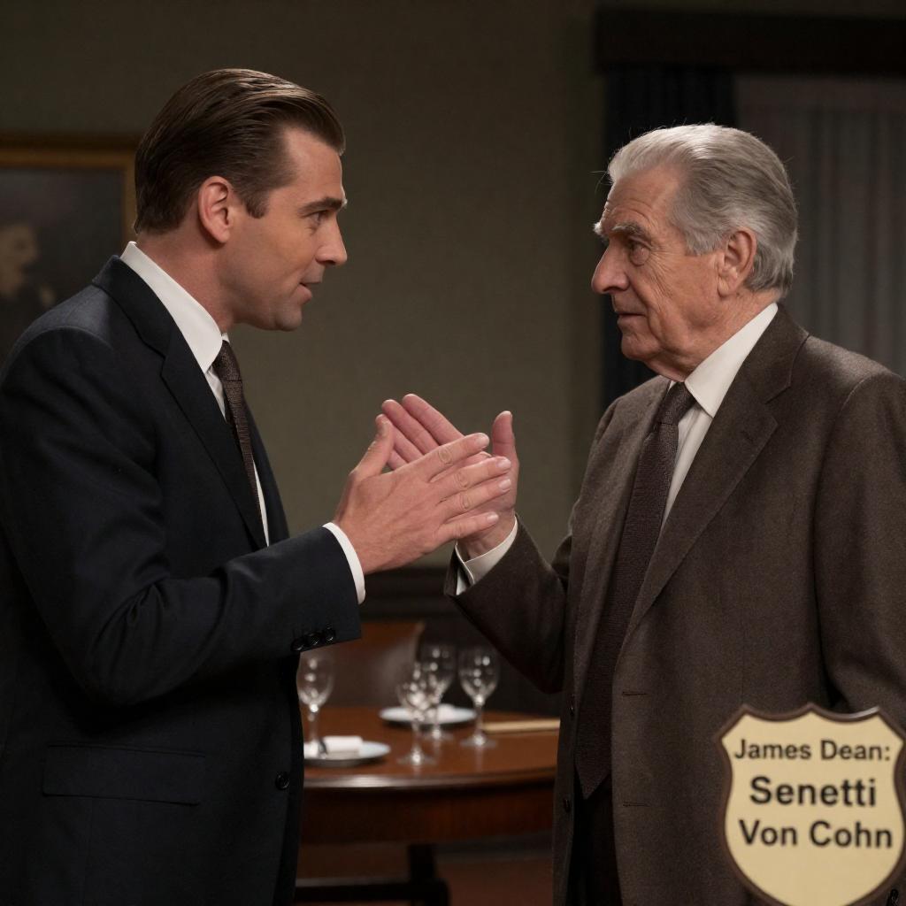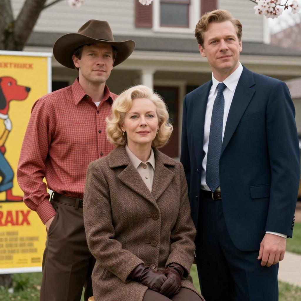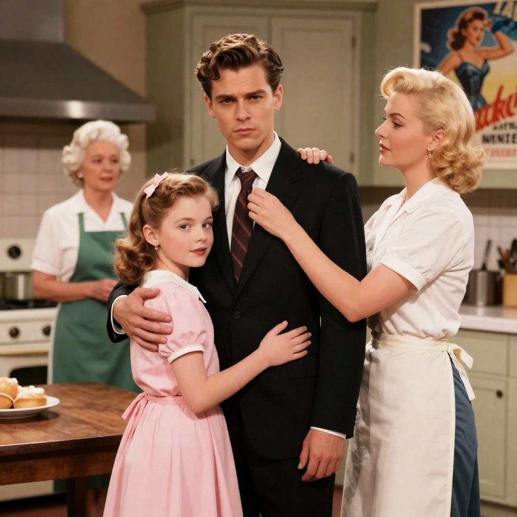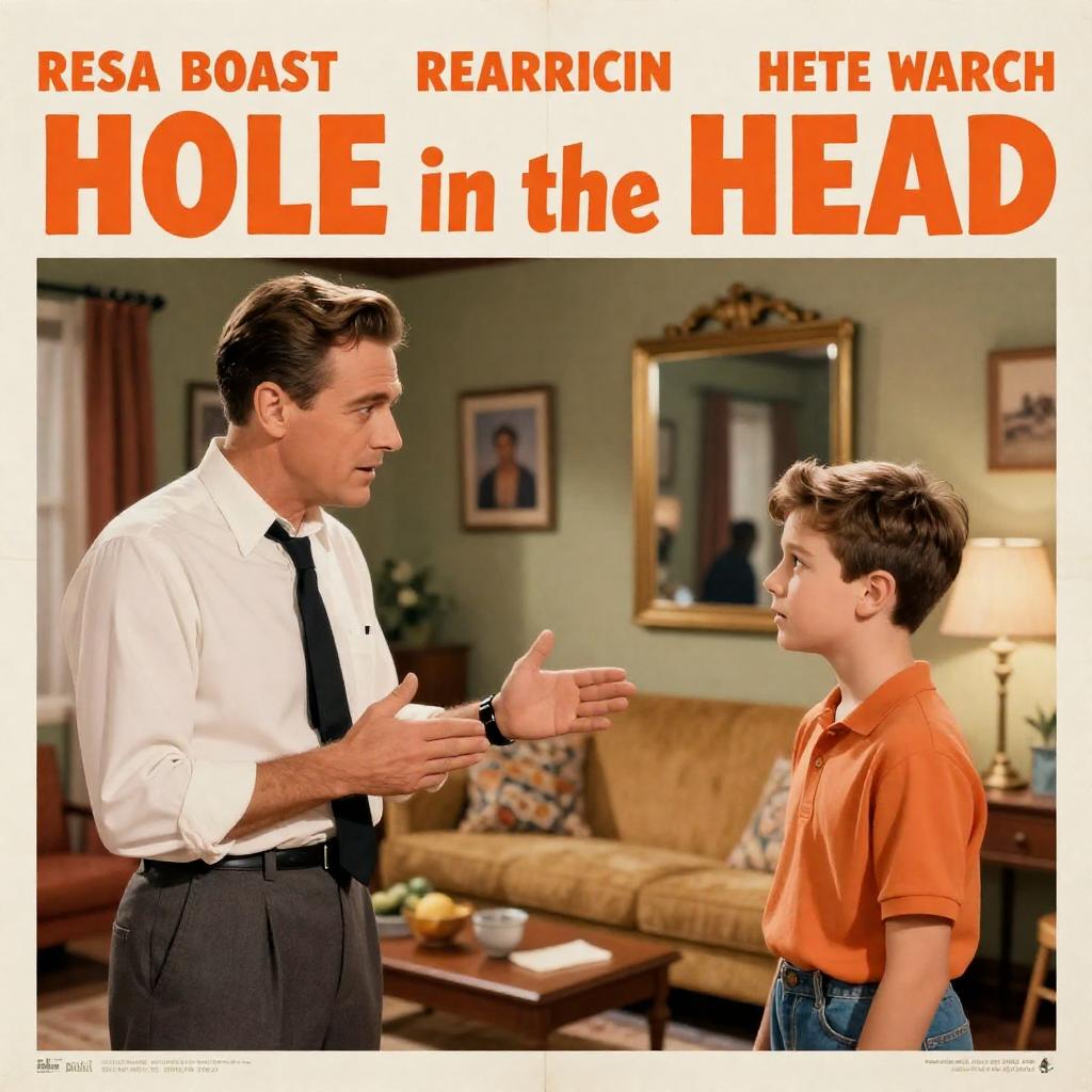 Photograph of a mid-20th century movie poster. A man in a white shirt and black tie gestures to a boy in an orange shirt standing in a living room. The room has a framed picture, a large mirror, and a lamp. Top border has actors' names in red. "A Hole in the Head" title in orange. Man on left, boy on right, looking at each other.