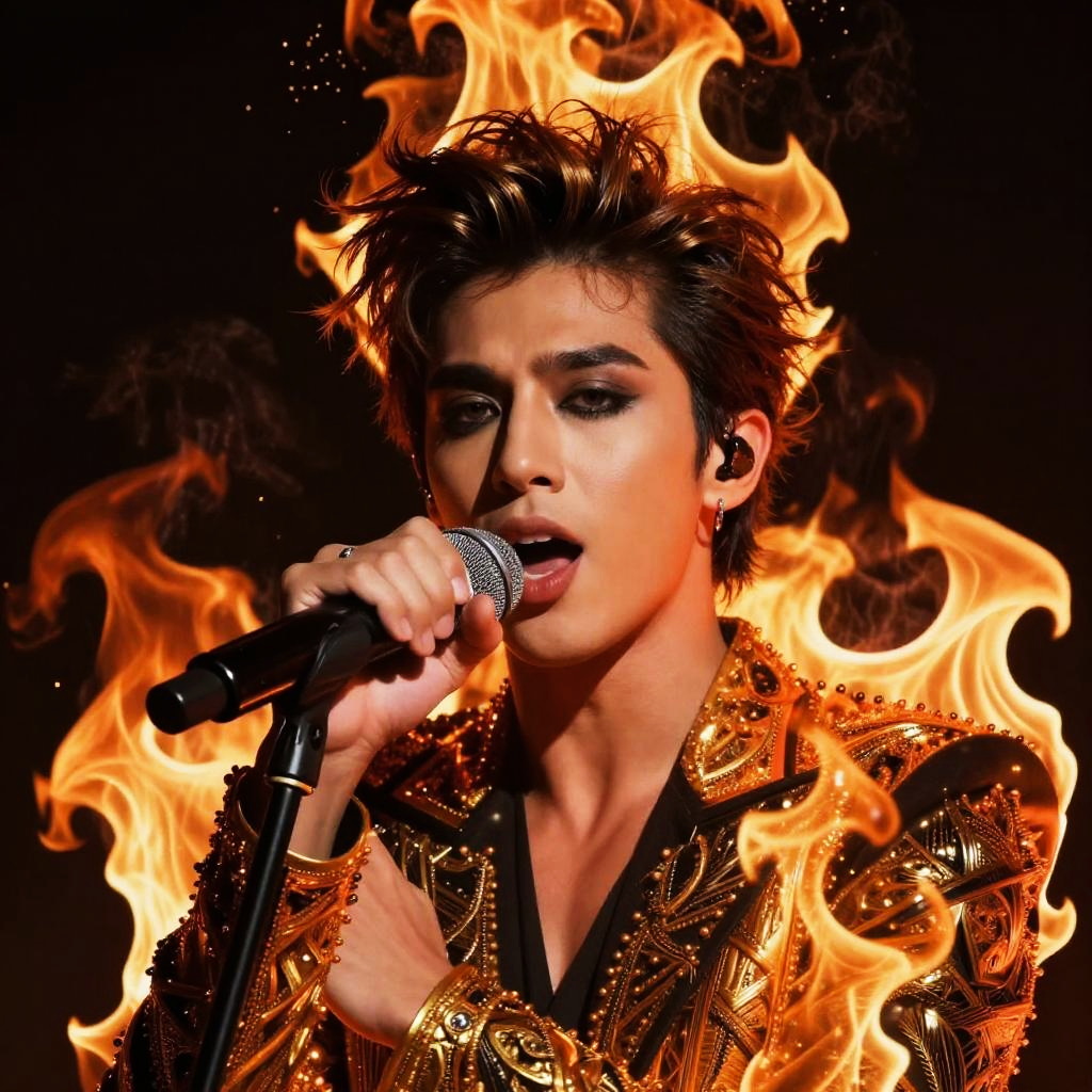 Fiery Singer Portrait in Avedon Style