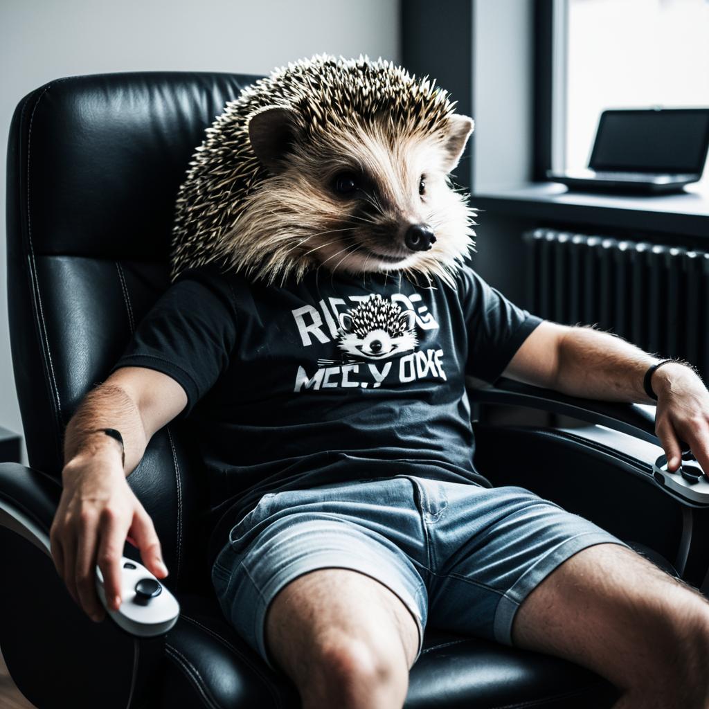 Virtual Reality Art anthropomorphic rabbit, in a zip-up jacket lounging on a beanbag, playing videogames, lightroom, cinematic, hdr, raw, intricate, high quality, soothing tones, intricate details, low contrast
