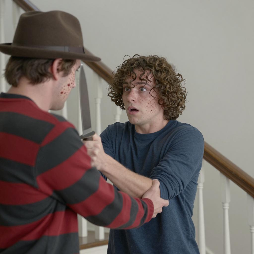Intense Standoff: Boy and Frightened Man