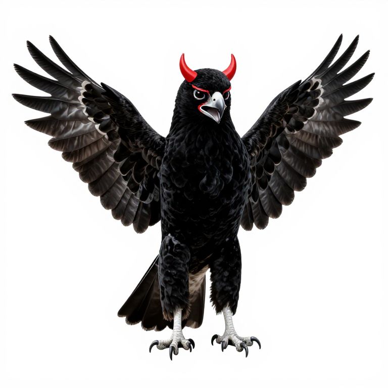 Velvet full body hawk with devil mask, minimalist, hyper realistic, black lines, hawk with open wings - Remix by,