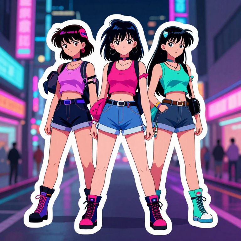 Vaporwave surprise me, cool teenage girl gang member, set in neo tokyo, akira, for die cut sticker 8k,