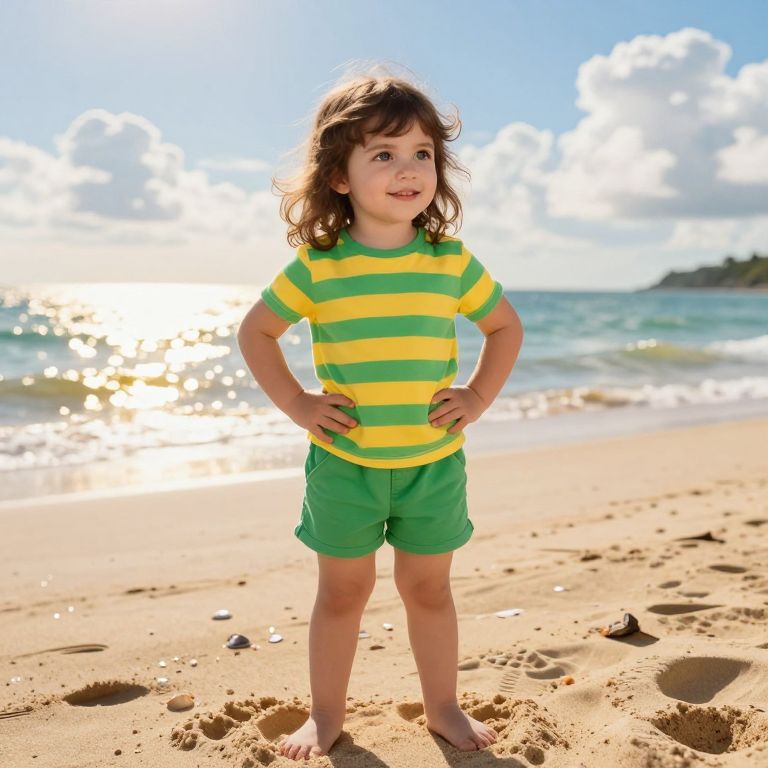 Bright Swimsuit Kid on Sunny Beach