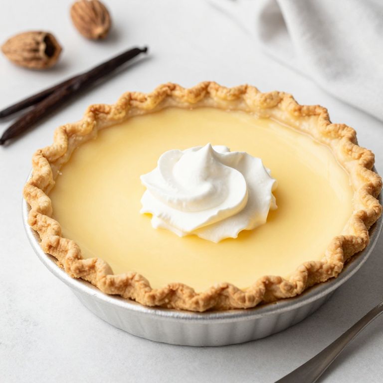 \"\"\"This is a creamy custard based pie made from scratch with classic eggnog ingredients. The nutmeg, vanilla and rum flavors make it taste very \"\"\"\"holiday\"\"\"\", but why not make it all year around? Even people who aren't eggnog fans love this one! Enjoy with whipped cream or without.\"\"\