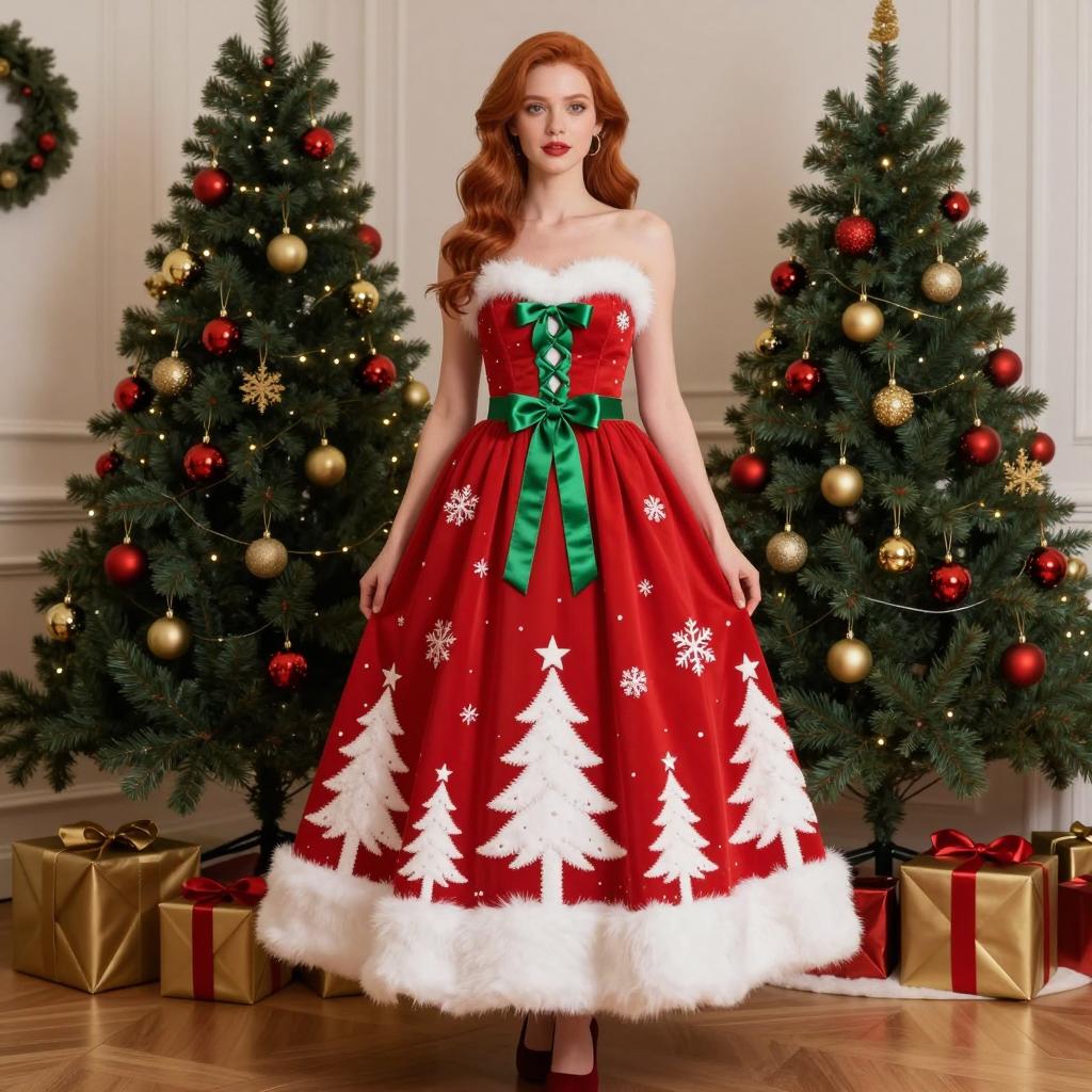 Adult desert cactus costume, photograph of a blonde woman standing in a desert with red rock formations, wearing a long, sleeveless, green and red dress with cactus patterns, red arm sleeves, and black boots, cacti in the background, daytime, natural light, realistic style, model, fashion photography, desert landscape