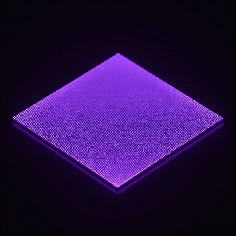 Photograph of a glowing, square digital display in vivid purple, set against a completely black background. The square is slightly elevated, with its edges casting subtle shadows. The purple light is evenly distributed across the surface, creating a pixelated texture. The display's edges are smooth and slightly reflective, adding a modern, high-tech aesthetic. The image is minimalist, focusing solely on the illuminated square, which stands out prominently against the dark backdrop.