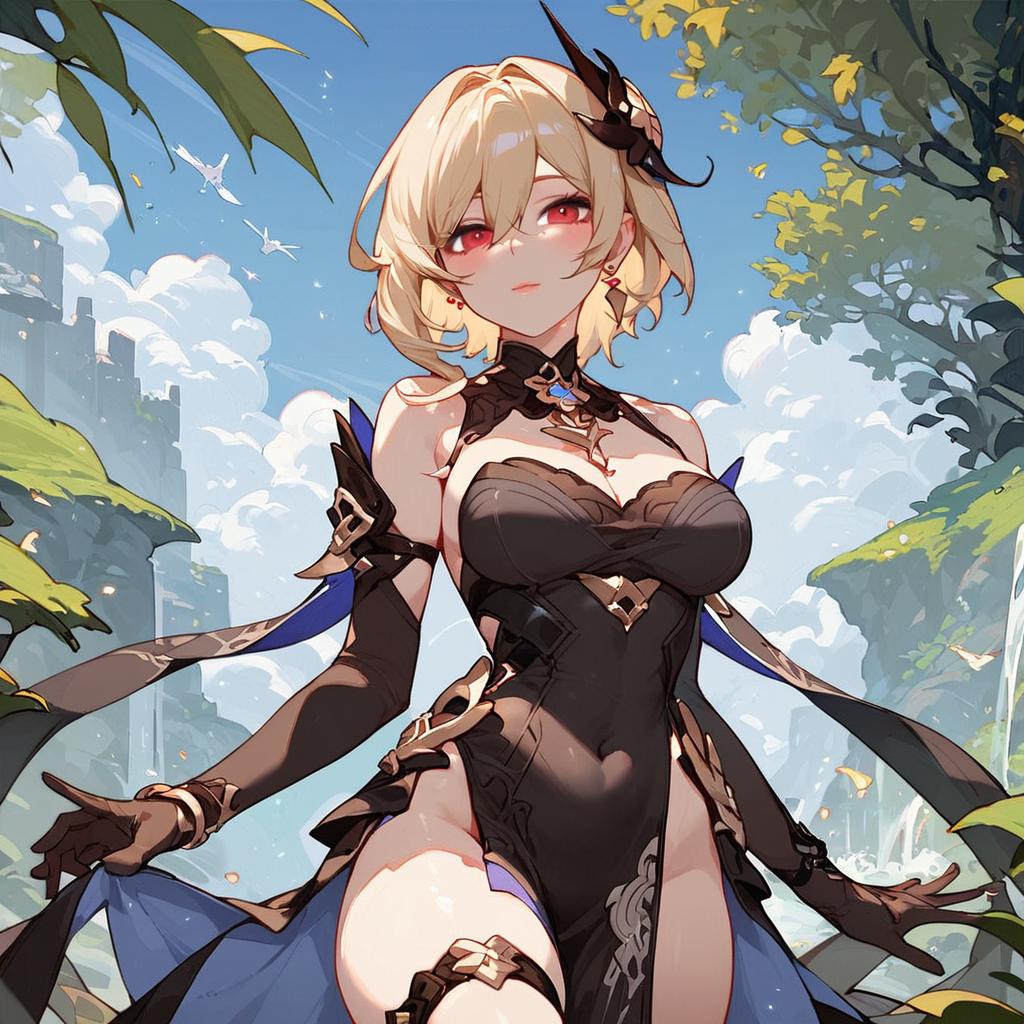 Blonde Anime Girl in Black Dress Outdoors