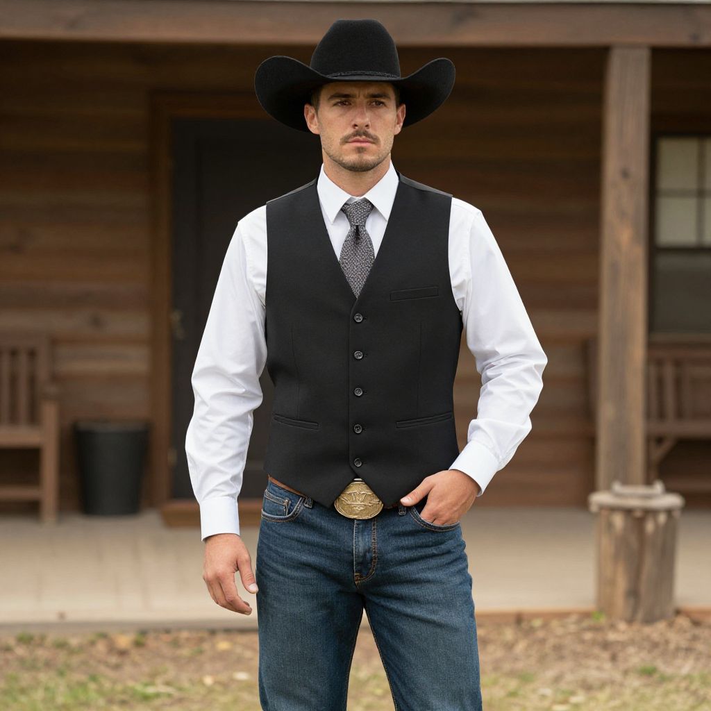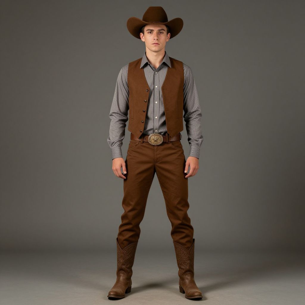 "Farmer Fancy Dress Fancy Dress, man in a cowboy hat and vest standing in a field"