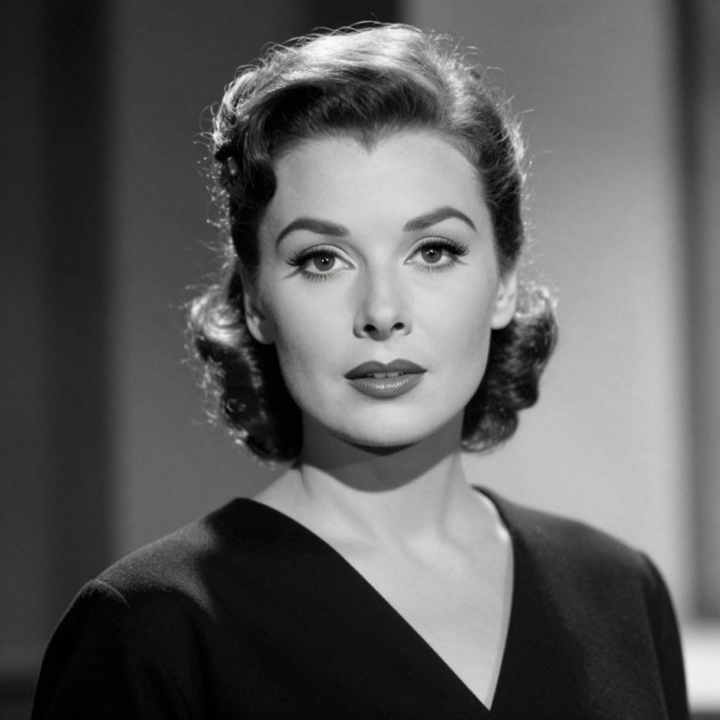 A high-definition, retro-inspired digital rendering of a woman with a vintage hairstyle reminiscent of Grace Kelly in 1955, captured in dramatic black-and-white lighting with a cinematic ambiance.