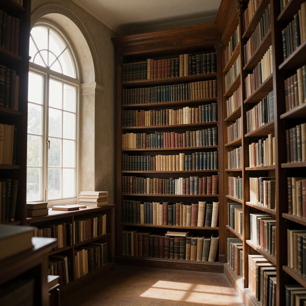 In the hushed embrace of an ancient library, where sunlight filters through arched windows, the air is thick with the scent of aged parchment and the whispers of countless stories, each book a living thread in the eternal tapestry of human knowledge, inviting solitude and contemplation amidst the infinite possibilities of discovery.