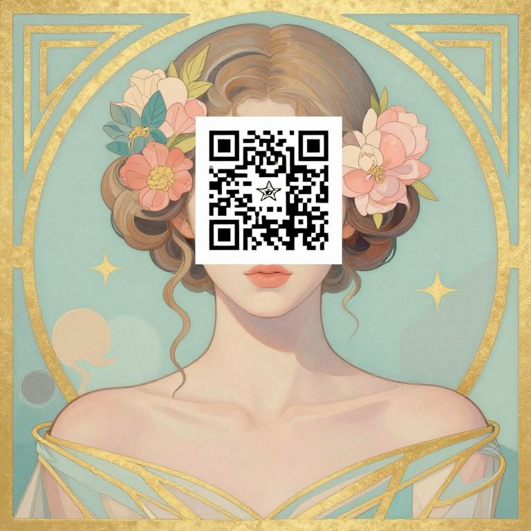 Environment Map A beautiful girl with a QR-code as her face. Rococo portrait, art deco, art nouveau, abstract. contrasting pastel colors,