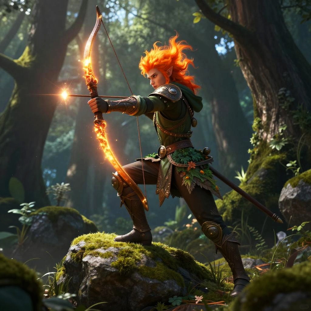 Cybernetic Elf Ranger in Bioluminescent Forest