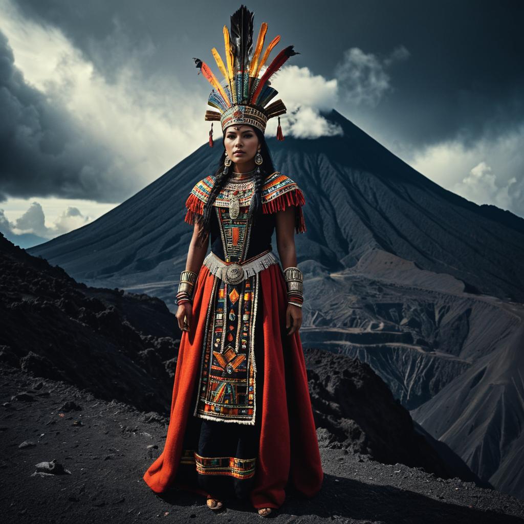 Stop Motion full body portrait of the alluring mysterious Native American shaman from beside a sacred river, indigenous Neo-tribal graphic style heroic portraiture, creative lighting, cinematic photography, HDR post production,