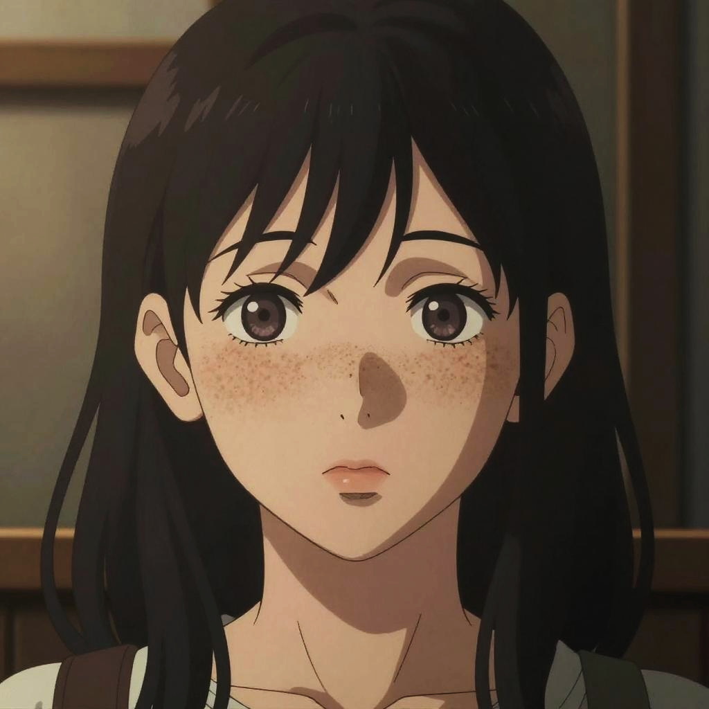 Beautiful age 18 girl, (anime screencap), black hair, freckles, sexy, beautiful, dslr, 8k, 4k, natural skin, textured skin, pixiv, depth of field, cinematic compotision, best lighting