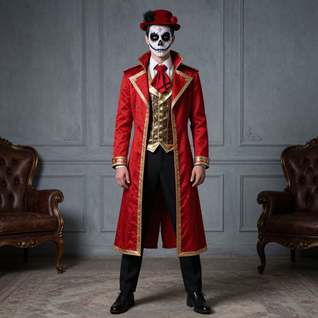 Muerte Book Life Costume, man in a red and gold outfit standing in a room