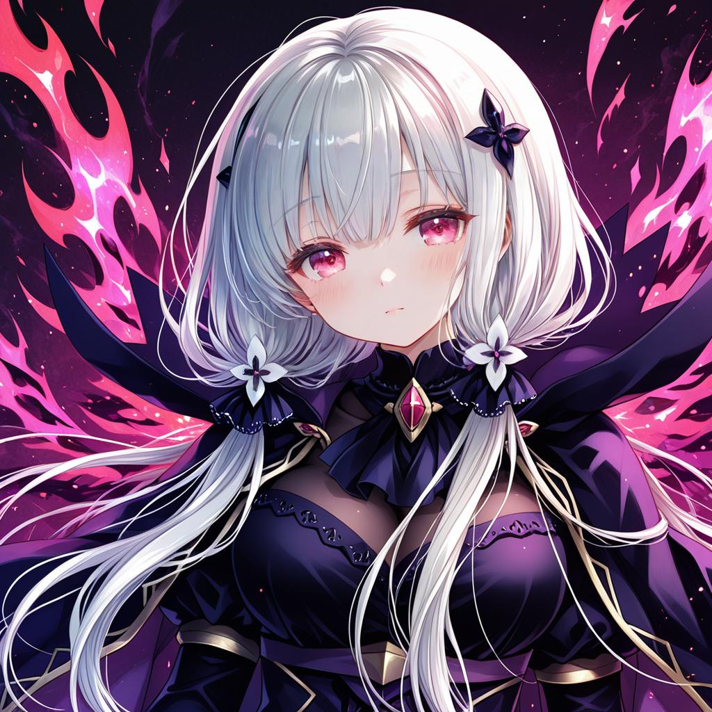 Angelica (project moon), project moon, 1girl, blue eyes, white hair, very long hair, black jacket, black sweater, black gloves, turtleneck sweater, ribbed sweater, black pants, long sleeves, ring necklace, ring, by artist katahira masashi, animagine