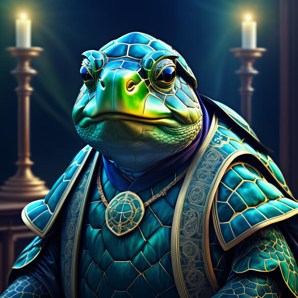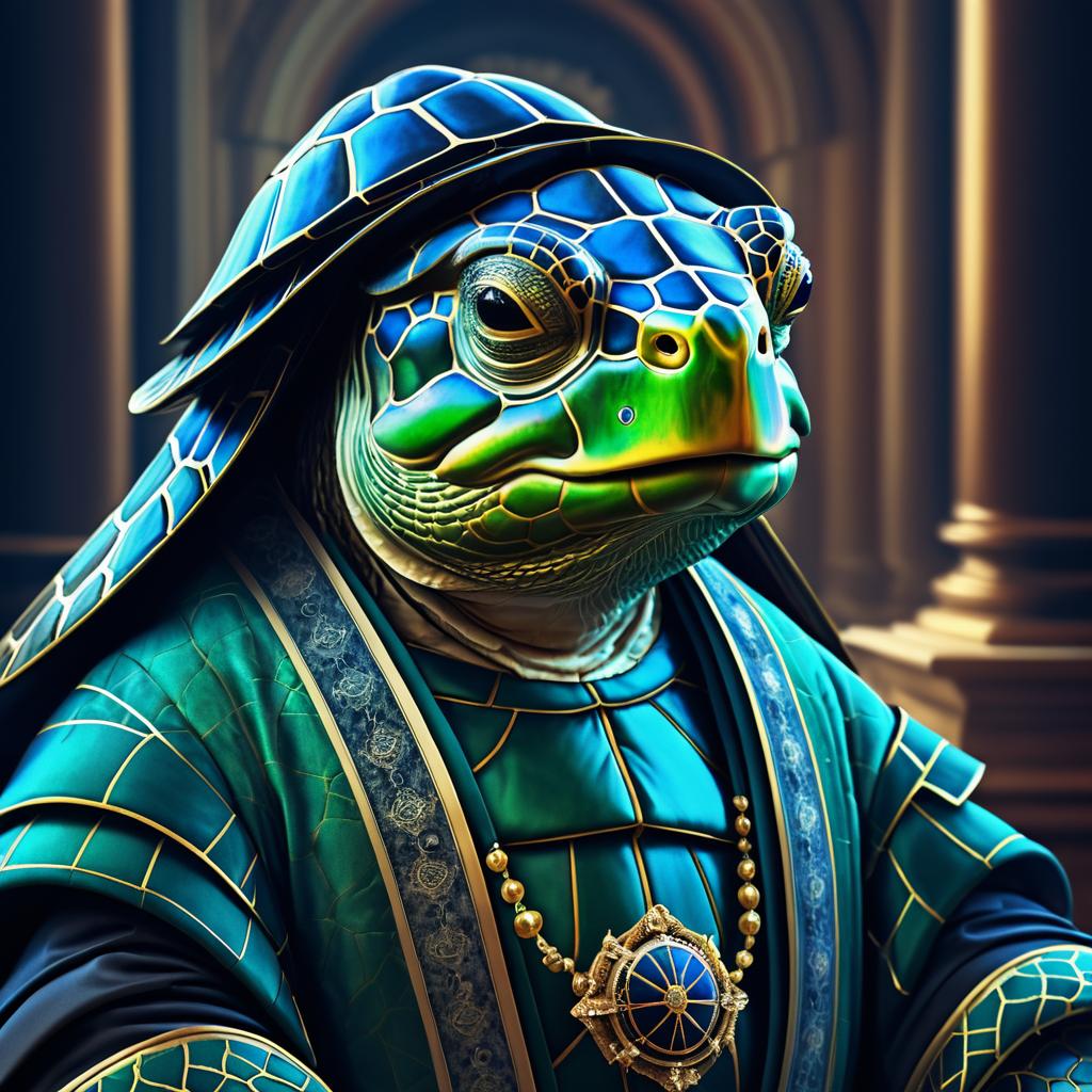 Elegant Turtle Philosopher Digital Portrait