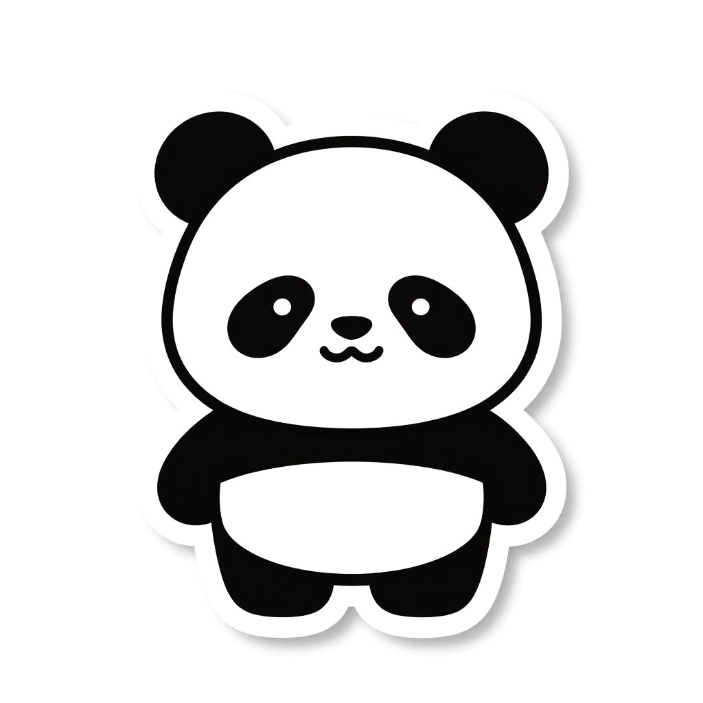 A cartoon-style die-cut sticker of a happy baby panda character. Vector line art, clean outlines, flat colors, HDR, 16K resolution, monochrome background, crisp and modern aesthetic