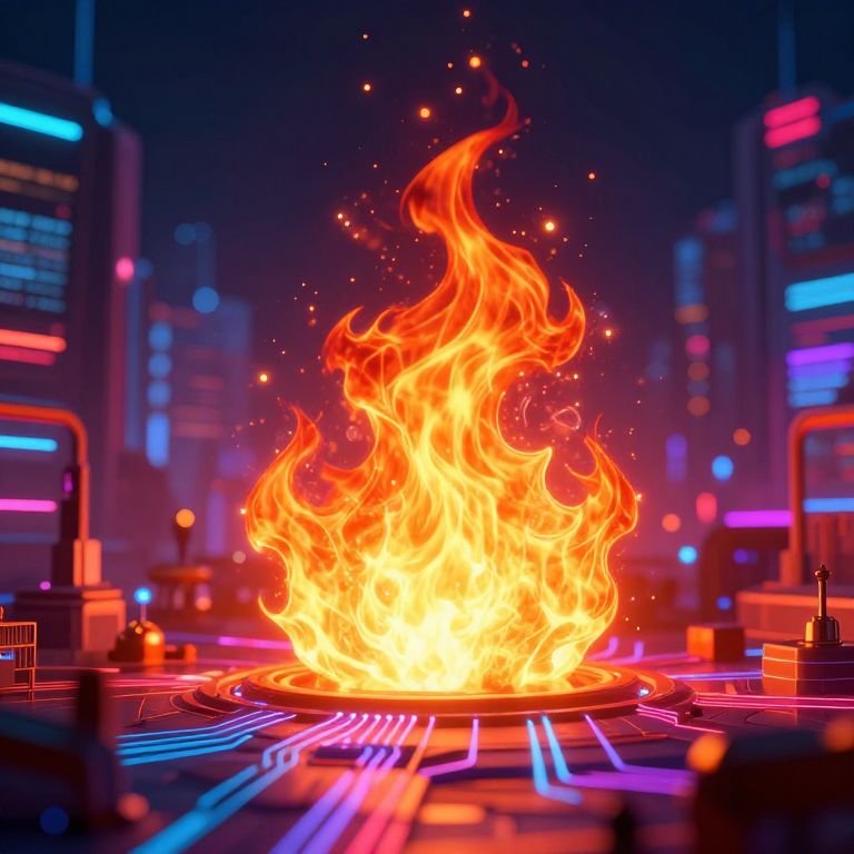 Tokenfire glowing amidst a futuristic digital landscape, with neon circuits and holographic flames, vibrant colors blending into a cyberpunk city background, high detail, cinematic lighting, sci-fi theme, ultra-realistic render.