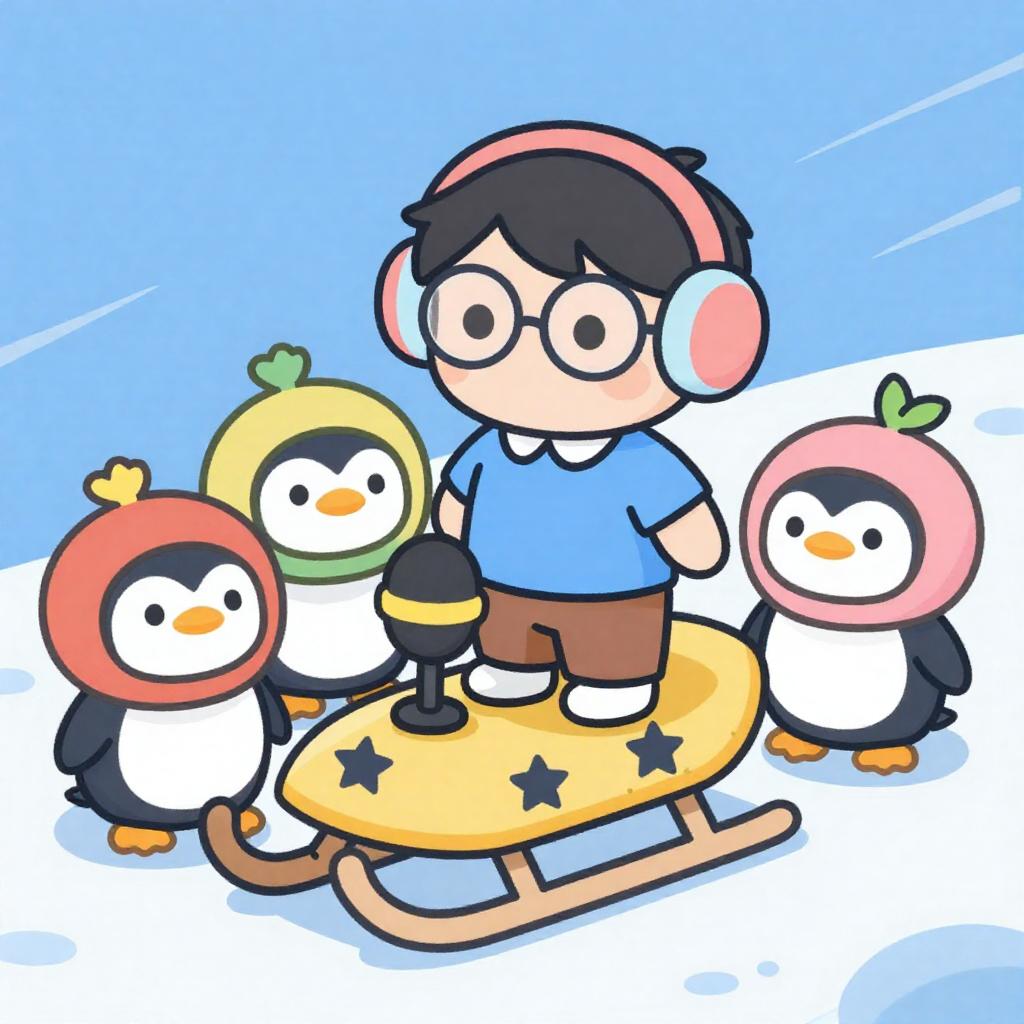 Digital illustration of a cartoon boy with black hair and round glasses, wearing a gray shirt, blue shorts, white socks, and sneakers. He is floating in a dark space filled with stars, holding a blue skateboard, illuminated by a bright diagonal blue beam of light.