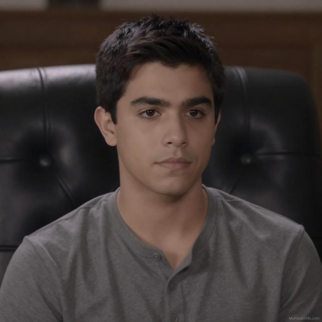 Photograph of a young man with dark, neatly combed hair, wearing a white military uniform with a black tie and colorful ribbons. He has a slightly open mouth, looking to the side. A blurred figure in a striped shirt is partially visible in the background. A "Screen Marines" is in the top left corner.