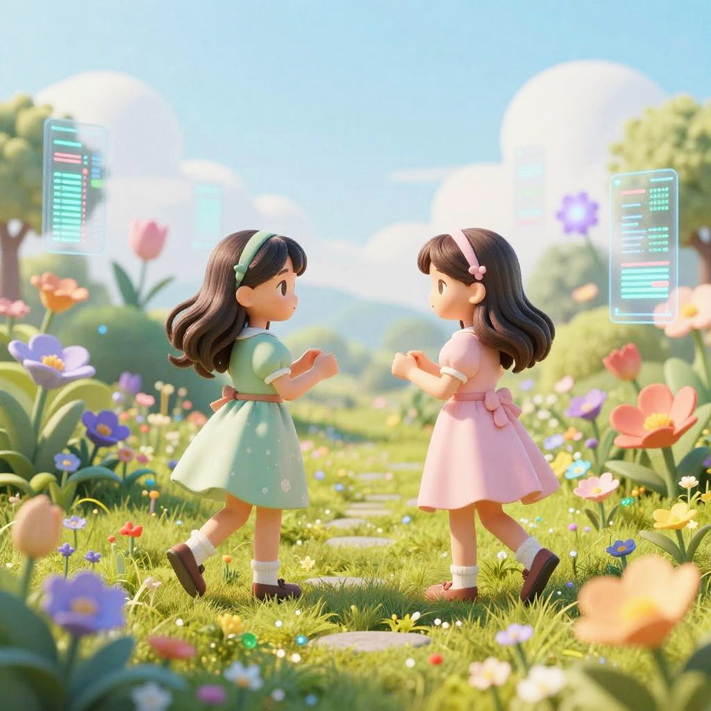 AI Tween Girls in Virtual Garden