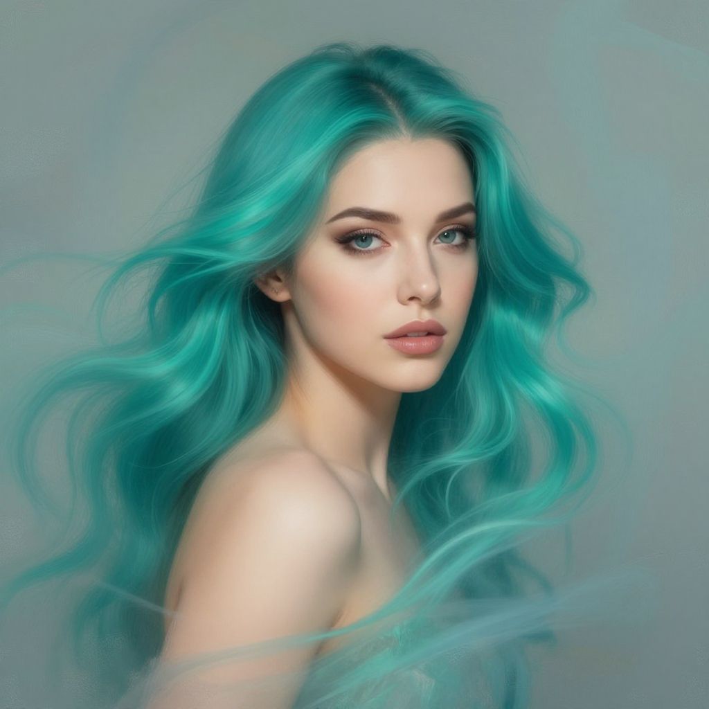 Digital artwork of a stunning woman with silver hair, blue eyes, and fair skin, wearing a black top, looking seductively at the camera.