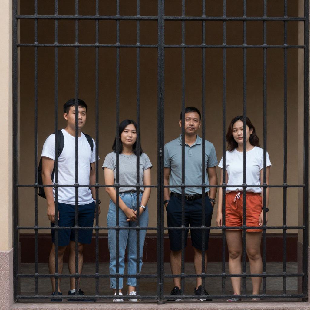 Black-and-White Prison Portrait of Four