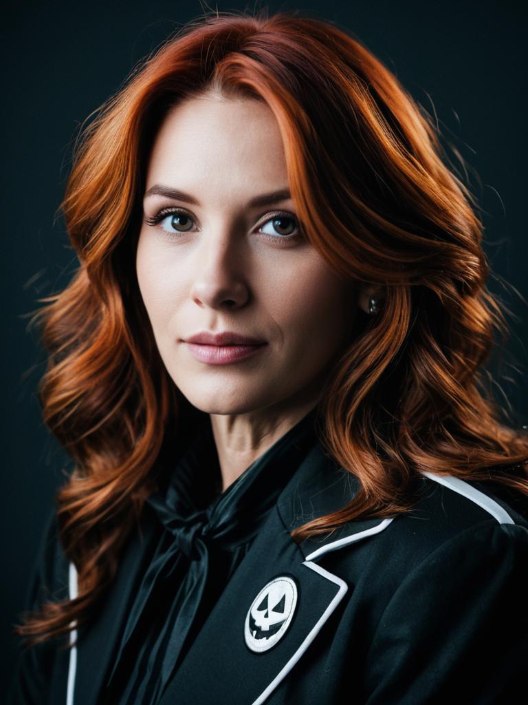Woman in Julia Roberts Halloween costume, professional cosplay studio headshot