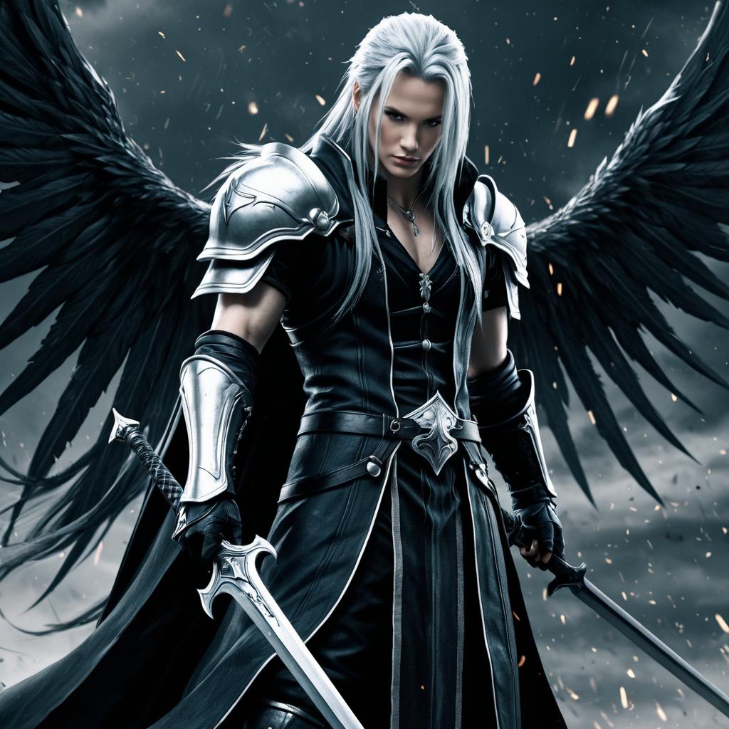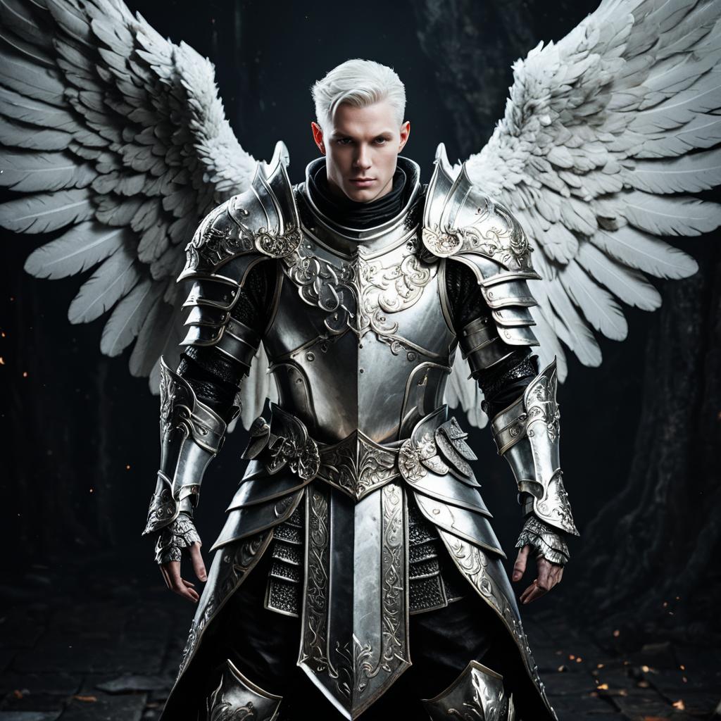 Albino Fallen Angel in Silver Armor