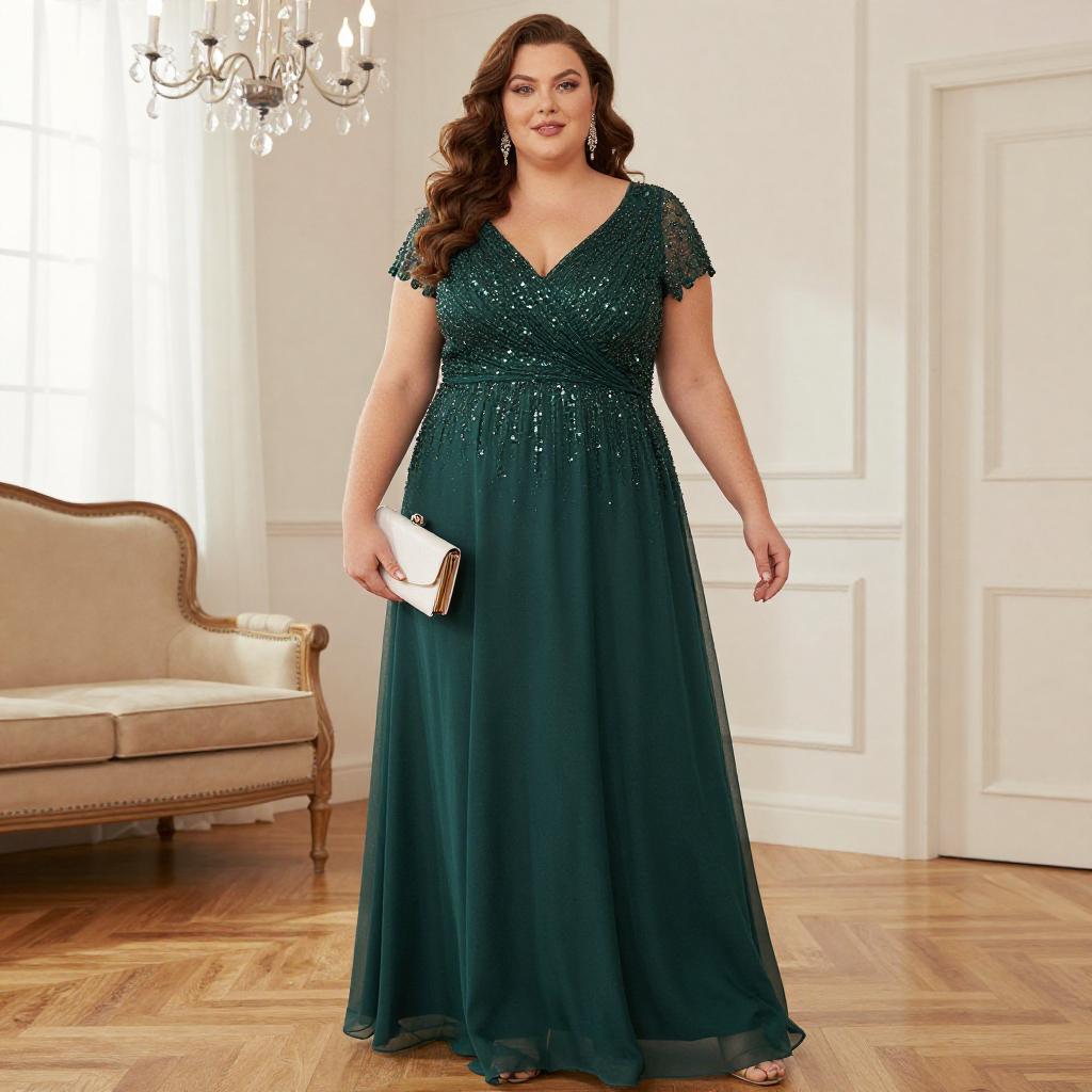 Elegant Curvy Woman in Silver Gown
