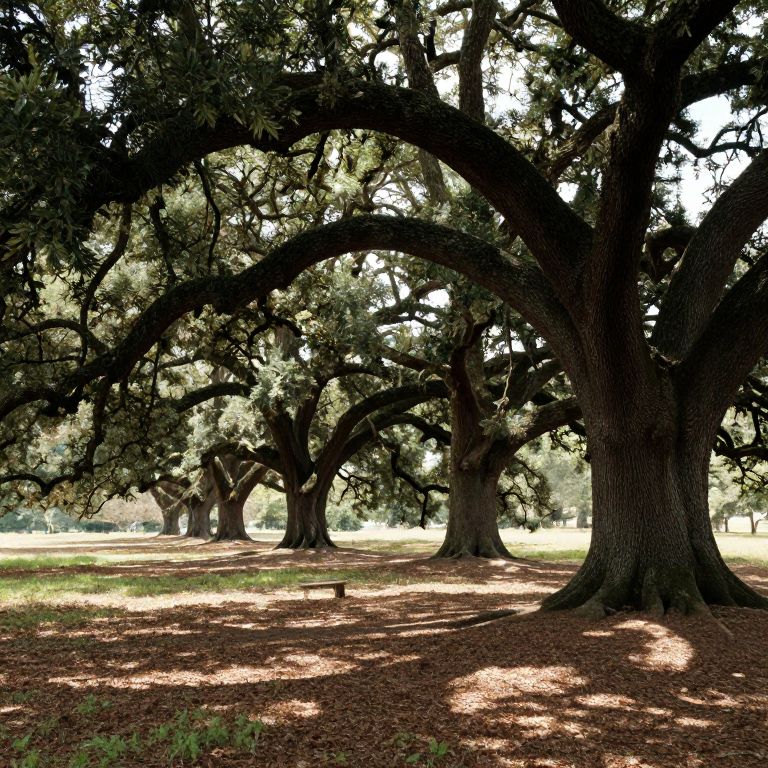 Serenity whispers through the dappled light beneath the grand oaks, where the earth hums with the quiet pulse of life, inviting contemplation and a deep connection to the enduring cycles of nature.