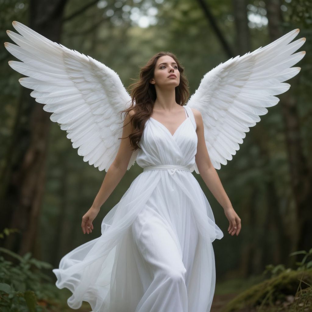 Serene Female Angel with White Wings