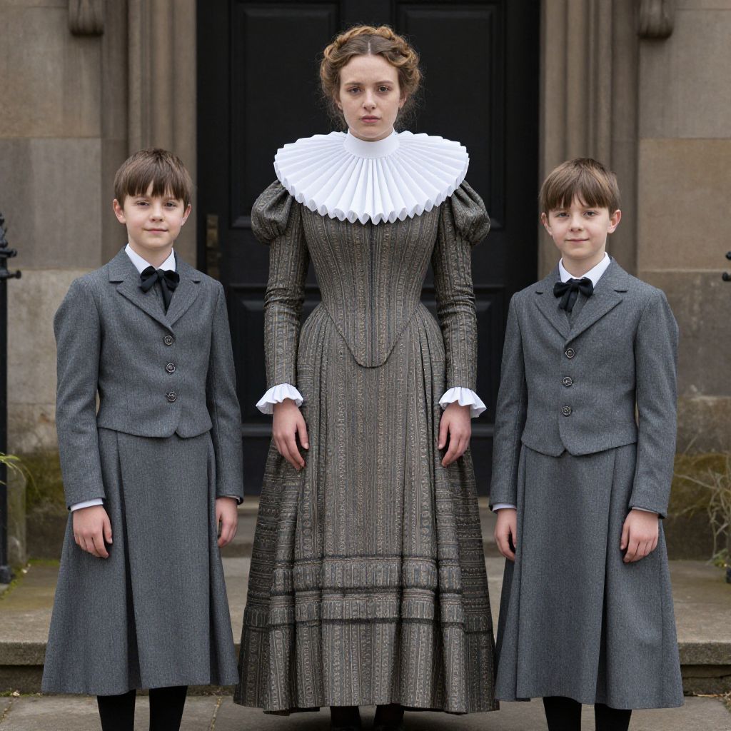 "Victorian Dress Teens, woman in a dress with a large collared neck"