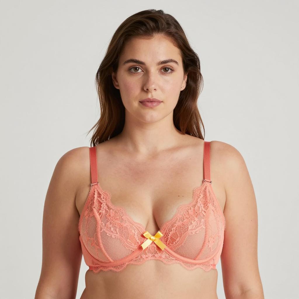 Portrait of Woman in Coral Lace Bra