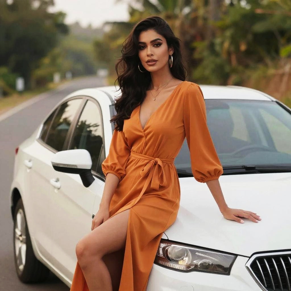 Wide Leg Ord Costume, woman in yellow jumpsuit standing on a narrow street in a city