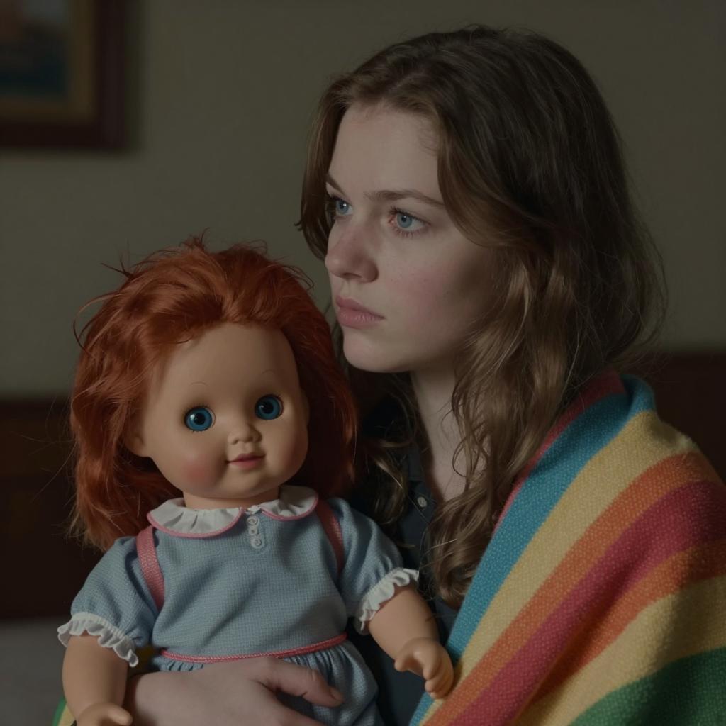 Somber Girl with Card in Dim Light