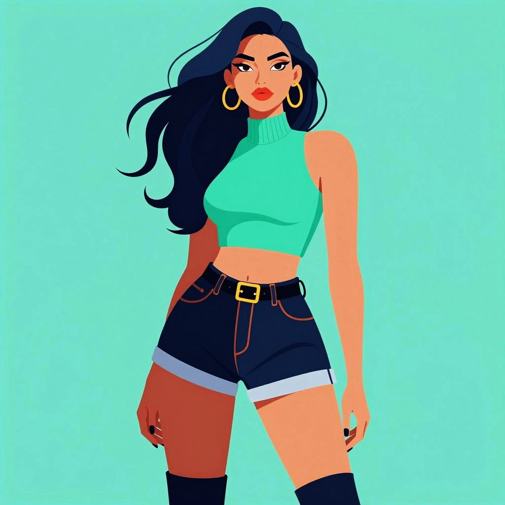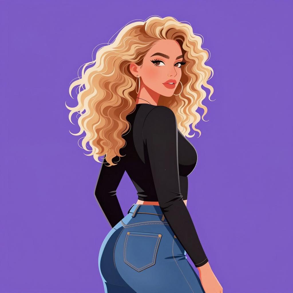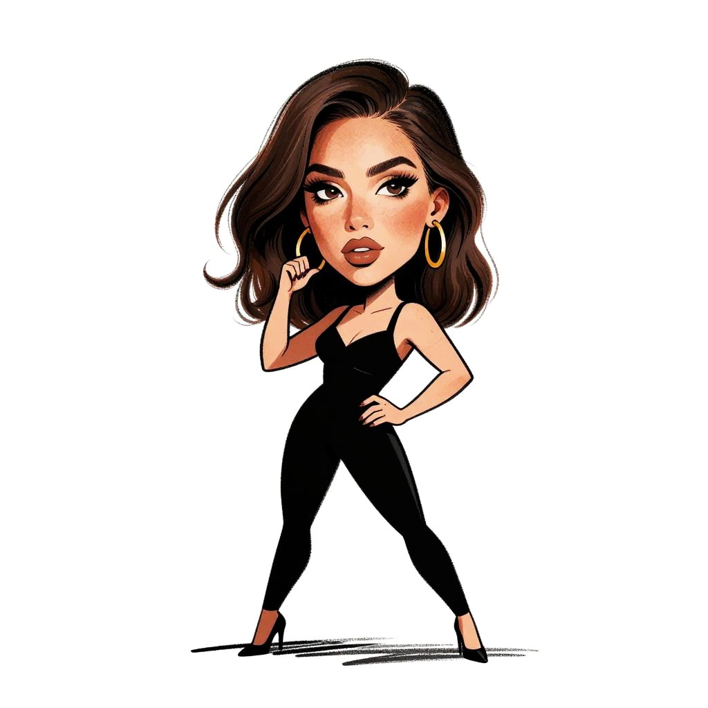 A playful caricature drawing of a woman with a striking pose, showcasing artistic creativity and a sense of humor.