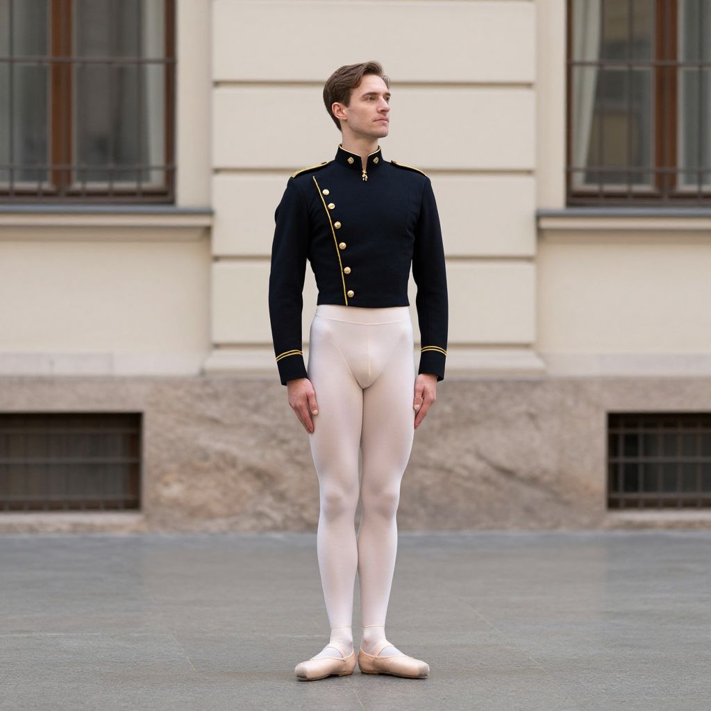 Soldier Ballet Costume, man in uniform standing in front of a building