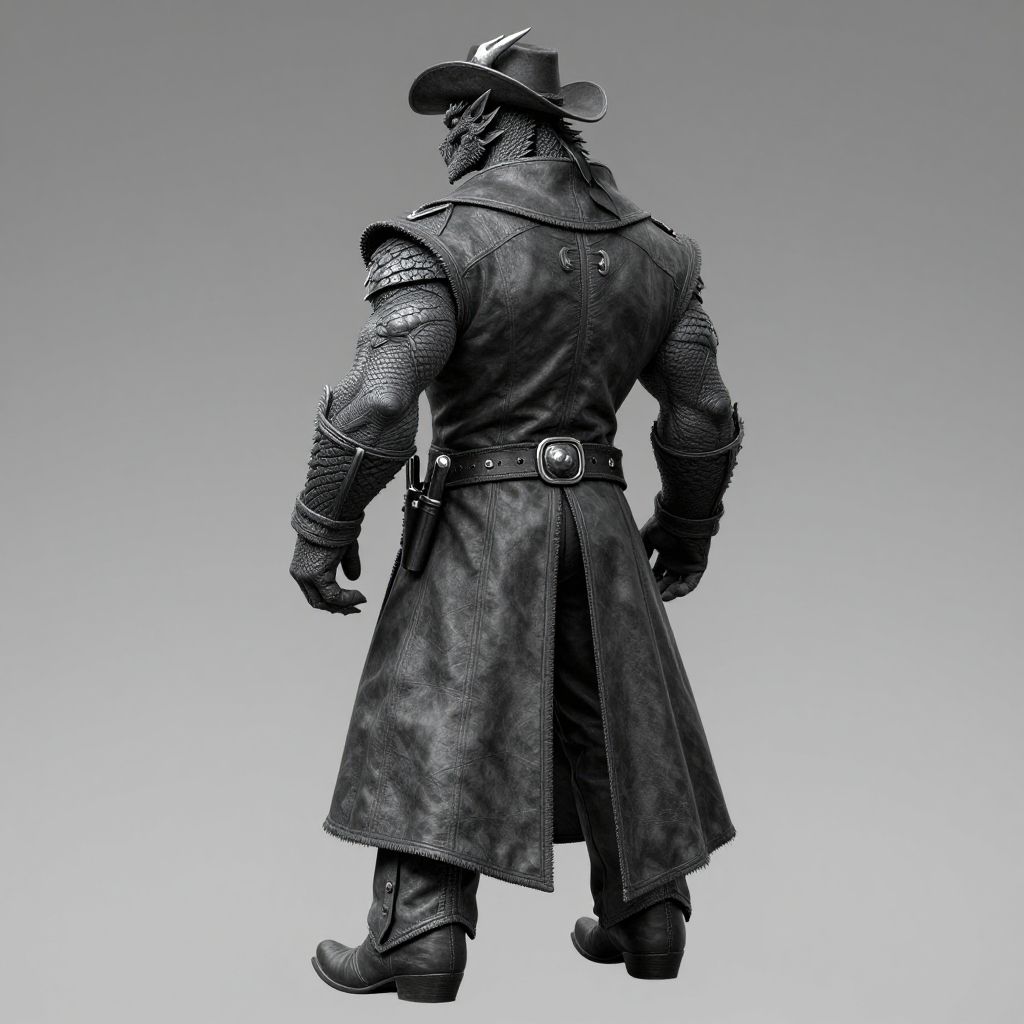 Muscular Anthro Dragon Cowboy Back View