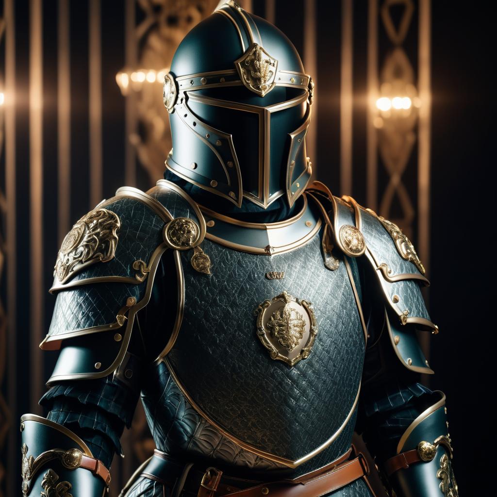 Brave knight wearing Gucci armor, luxury materials, cinematic and professional studio lighting, sharp focus, 4K.