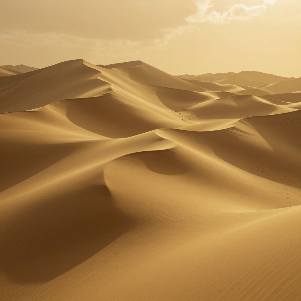 Mountains ripple like liquid fabric, their peaks folding into one another in slow, elegant waves, as if the planet breathes beneath a sky of liquid gold.