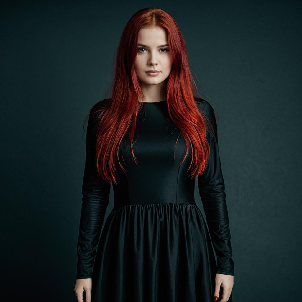 Office halloween attire,1girl, solo, high heels, long hair, skirt, red hair, fashion, orange hair, shoes, standing