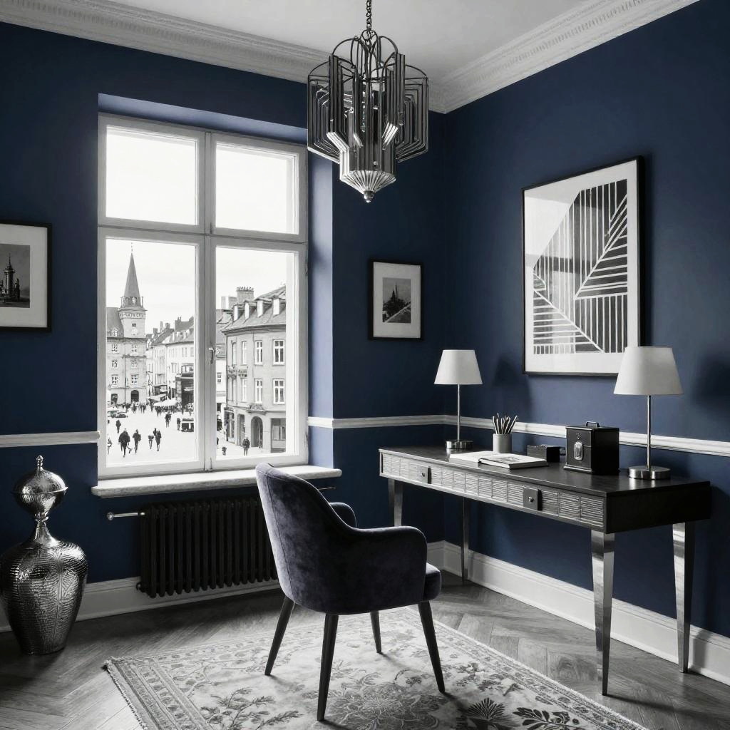 Monochrome Create an extremely accurate and detailed photograph of an urban rooftop lounge, showcasing a unique blend of Industrial and Contemporary design styles, with a neutral palette of steel grays and creams. The image should capture the elegance of Scandinavian design while incorporating bold accents of Mid-Century Modern. The room should feature a picturesque view of metropolitan skyline at twilight.