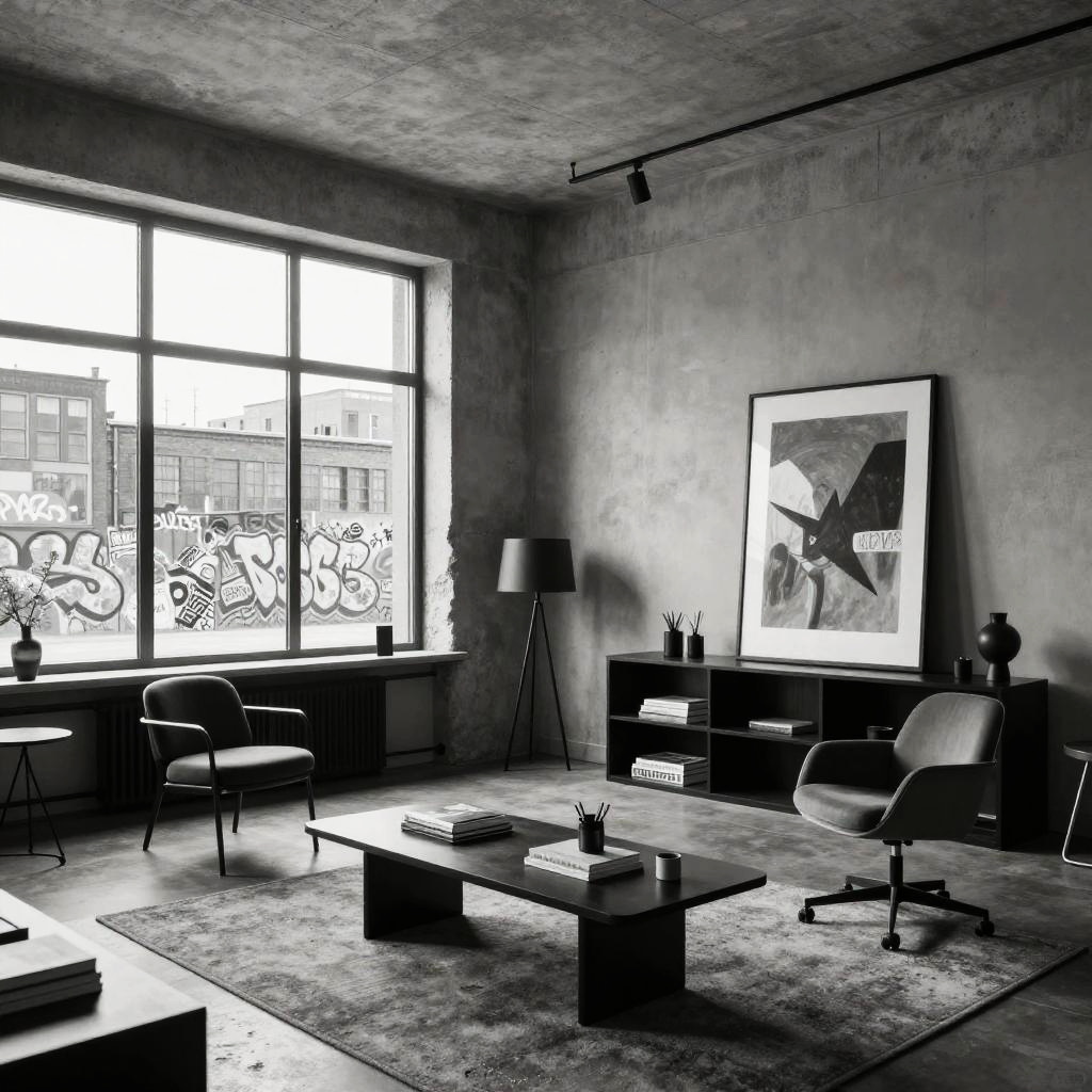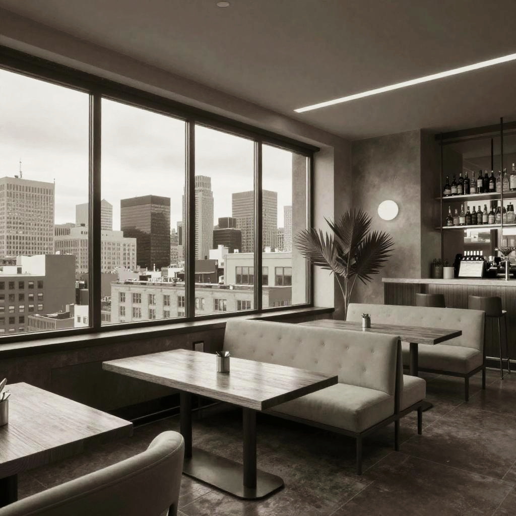 Monochrome Urban Rooftop Lounge Design