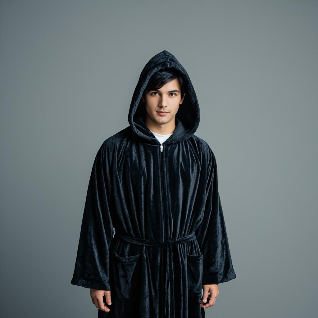 Christmas light pajama pants,1boy, male focus, christmas tree, solo, christmas, gift, standing, full body, box, indoors, pants, black hair, shirt, looking at viewer, christmas ornaments, pajamas